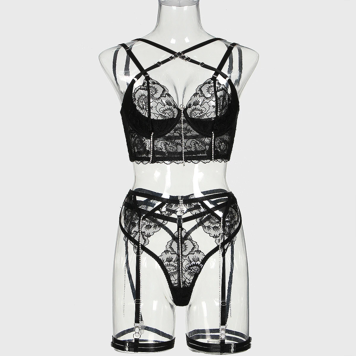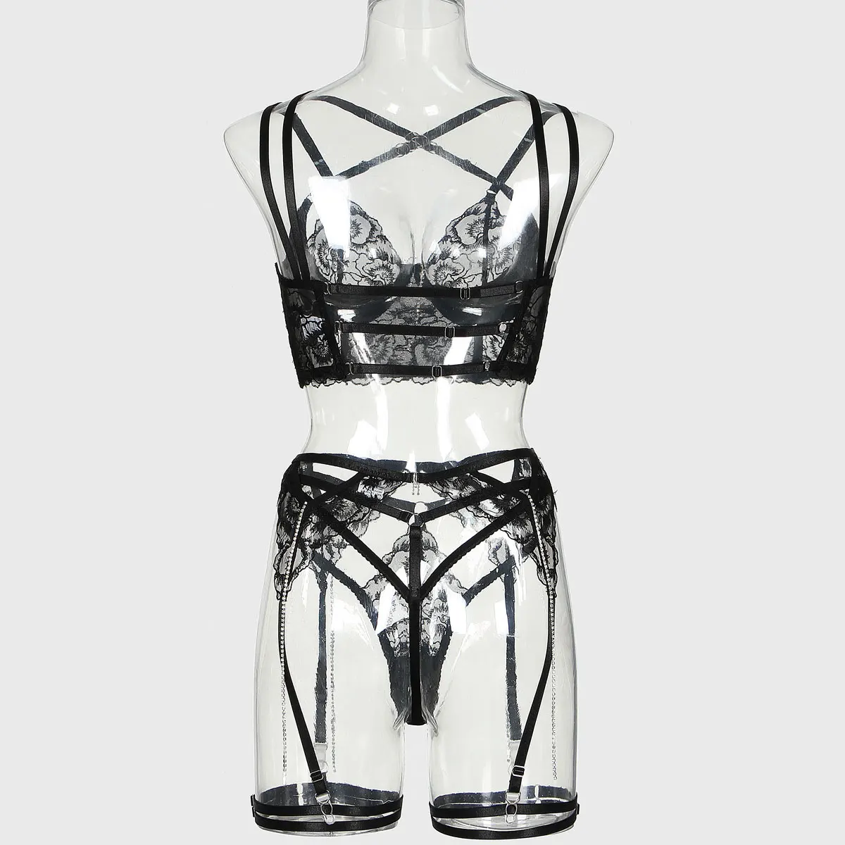 Lingerie sexy en plastique pour femmes, artisanat complexe, 4 pièces