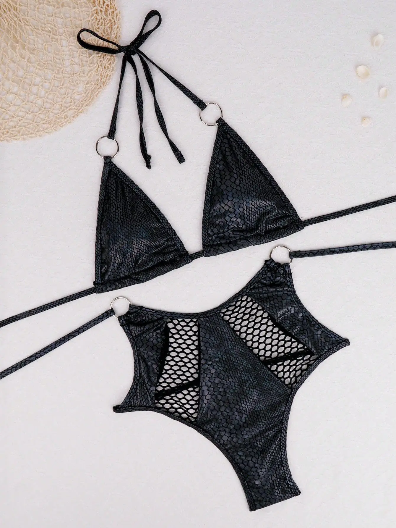 Cet ensemble bikini peau de serpent est idéal pour celles qui recherchent un maillot de bain sexy, original et exotique, alliant style audacieux et féminité assumée.