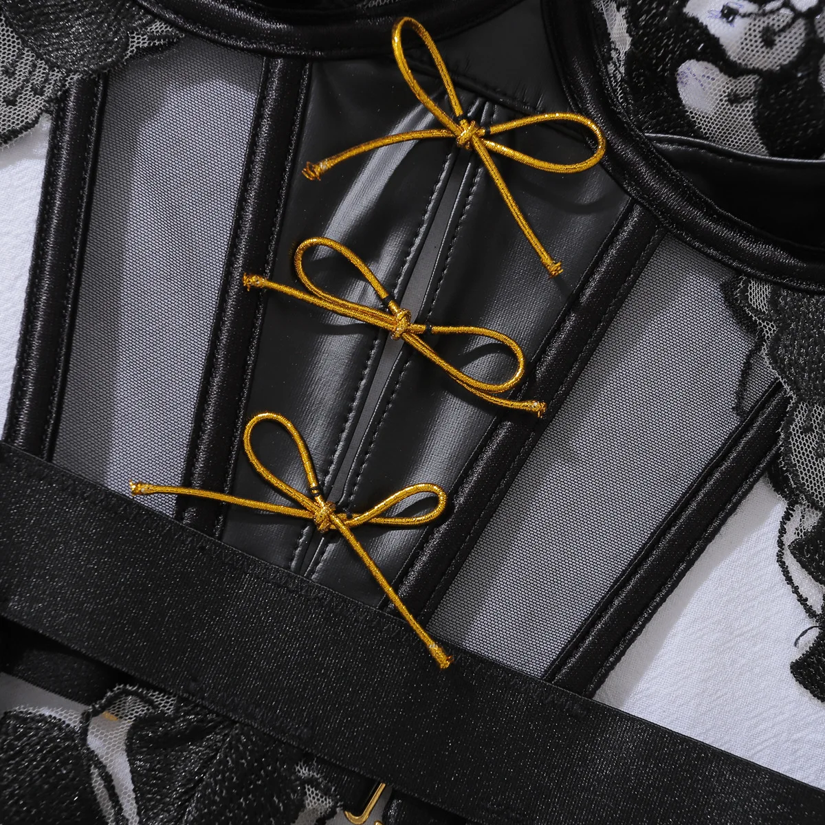 Sublimez votre silhouette avec ce body lingerie sexy pour femme, confectionné en dentelle florale délicate et doté d’un laçage décoratif élégant. Son design ajouré et raffiné met en valeur les courbes avec subtilité, offrant une allure à la fois séduisante et sophistiquée.