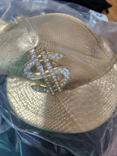 La photo n'est pas très bonne, mais le chapeau est très beau, lumineux et fait avec du matériel de qualité. La taille est réglable.