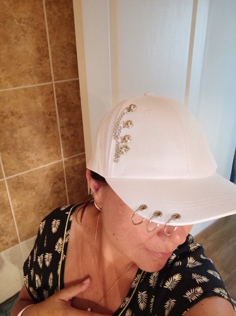 La PAC est bonne. Mais je n'aimais pas ces morceaux de fer. J'ai enlevé tout le piercing et collé les strass. Un peu de fantaisie et une nouvelle casquette.