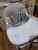 Dimensions: du plateau vers le bas 75cm/29.5in de haut, 68cm/26.8in x 80cm/31.5in zone de couverture pour 4 pieds lorsqu’il est utilisé comme une chaise haute.