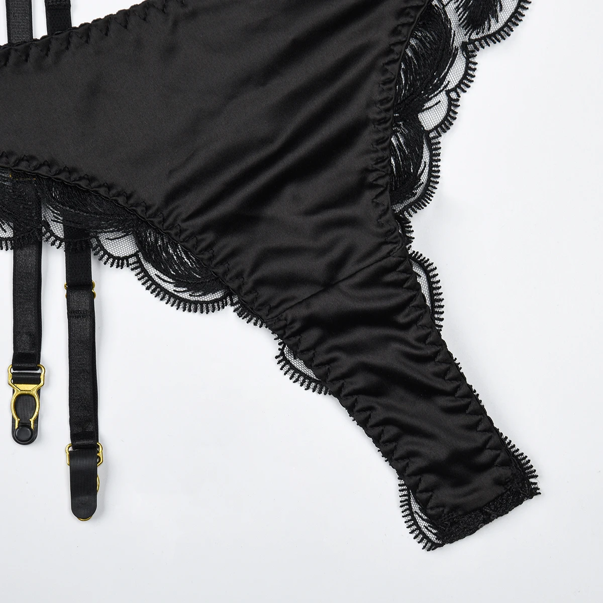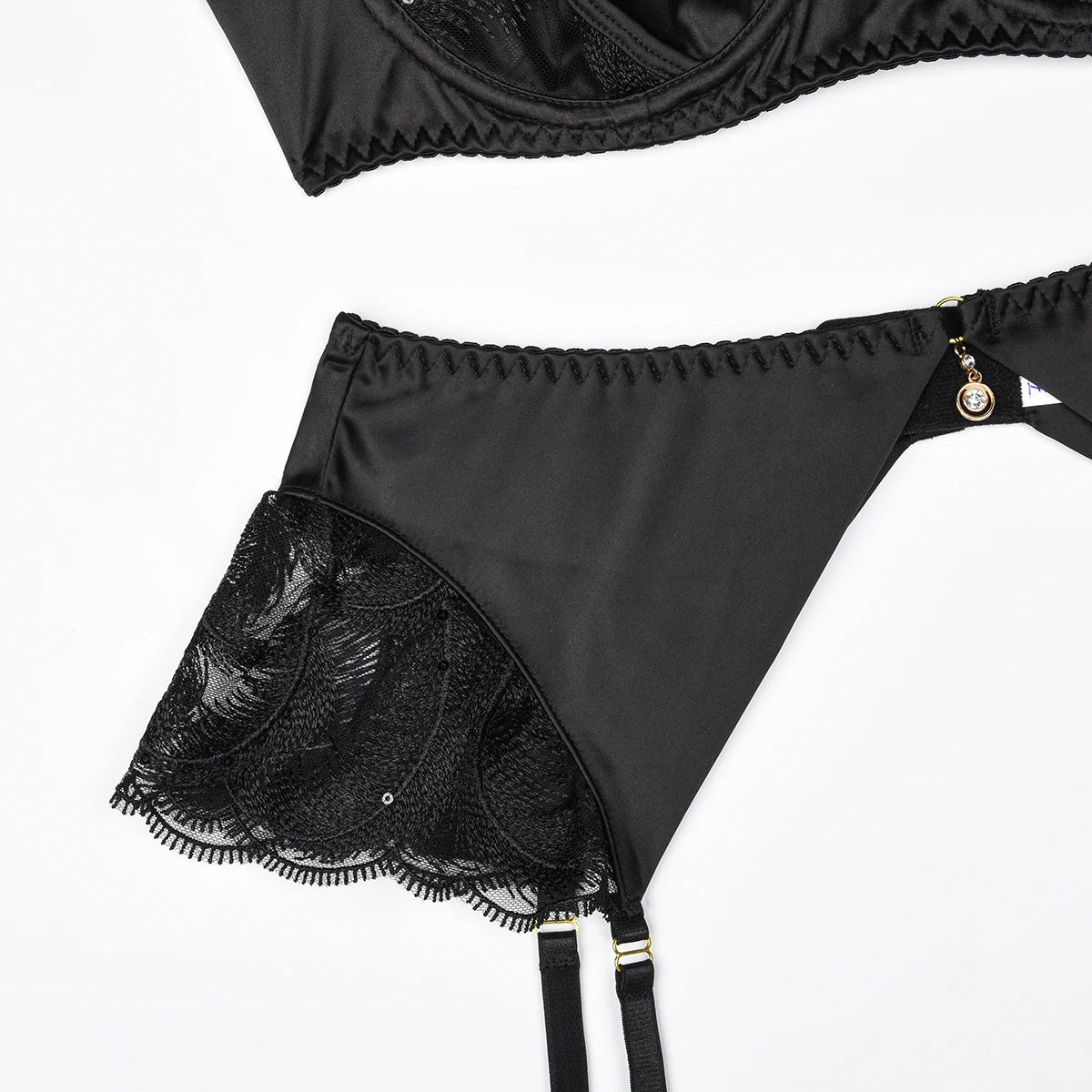 Ensemble de lingerie 4 pièces avec pendentif à volants en satin 7.0