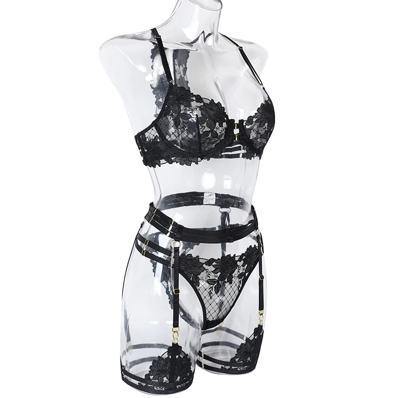 Soyez le premier à laisser votre avis sur “Ensemble de Lingerie brodée en dentelle florale pour femmes soutien-gorge et culotte transparents”