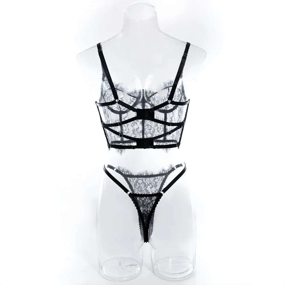 Ensemble de lingerie sexy en dentelle noire, sous-vêtements en dentelle de paupières