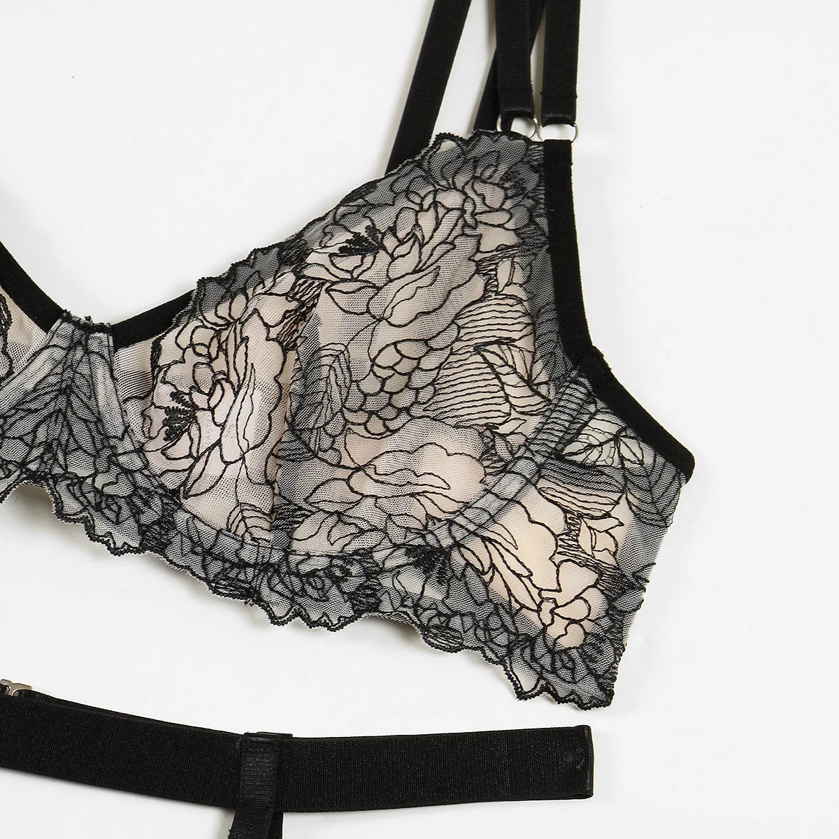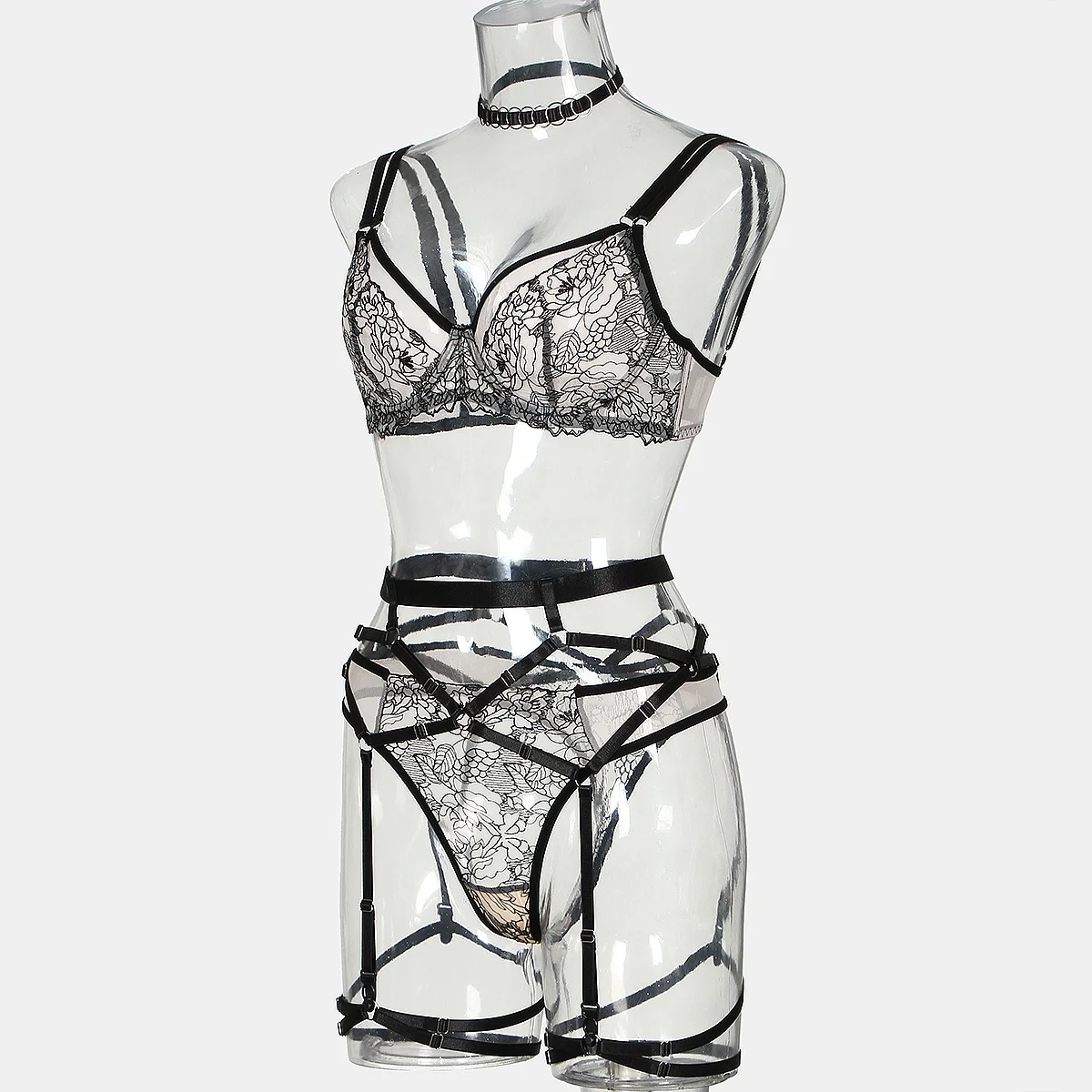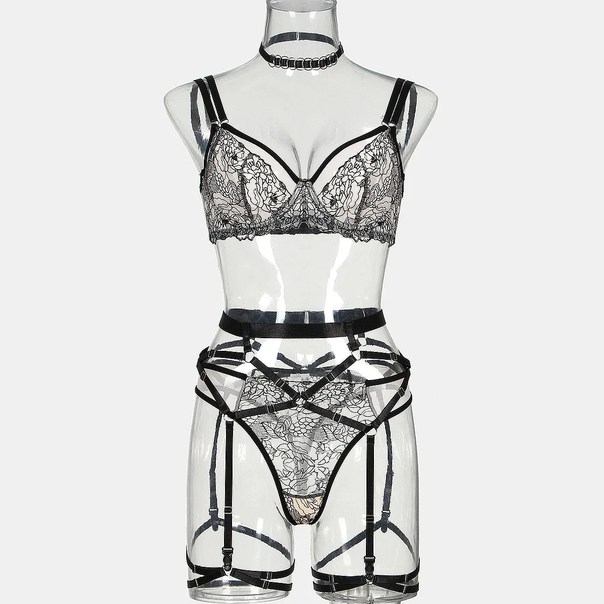 Ensemble lingerie femme – Dentelle florale imprimée, soutien-gorge et slip transparents, style sexy et tendance