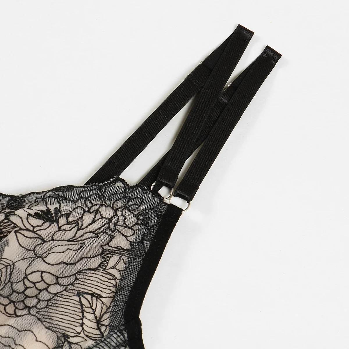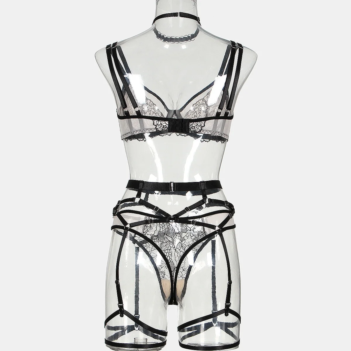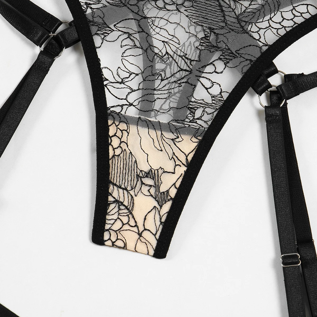 Ensemble lingerie femme – Dentelle florale imprimée, soutien-gorge et slip transparents, style sexy et tendance