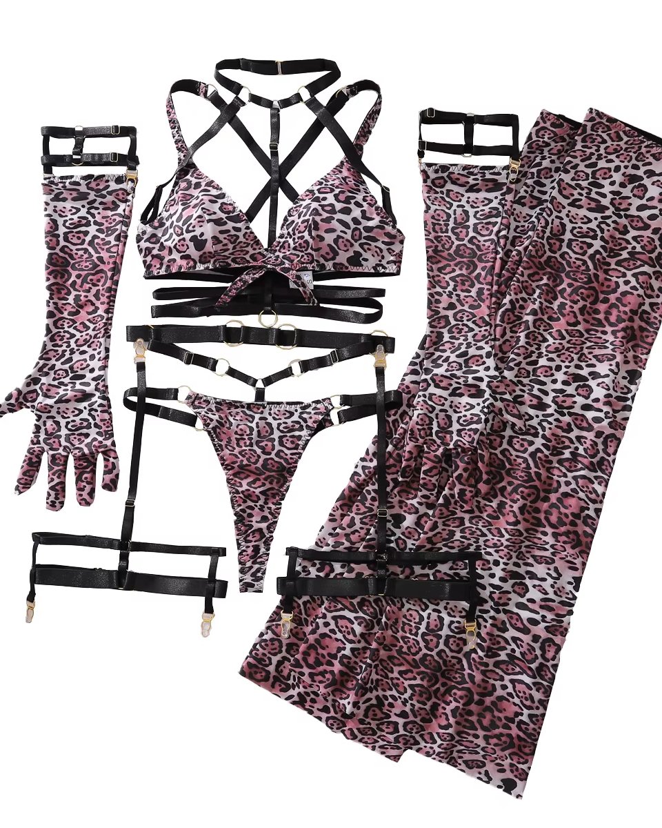 Affirmez votre style avec cet ensemble de lingerie sexy 2 pièces à motif léopard, pensé selon les tendances 2026. Son design ajouré et ses bretelles complexes créent une allure audacieuse et moderne, tout en offrant un effet sculptant qui met en valeur la silhouette.