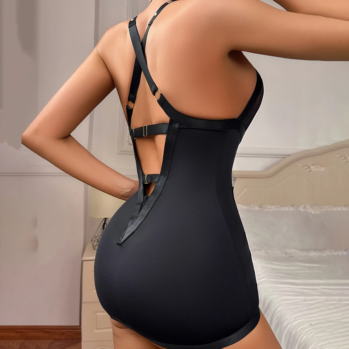 Soyez le premier à laisser votre avis sur “Lingerie féminine audacieuse – Top col V ajouré et jupe sexy sculptante”