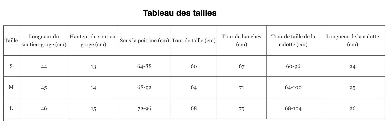 • Ensemble lingerie 2 pièces (haut + culotte)