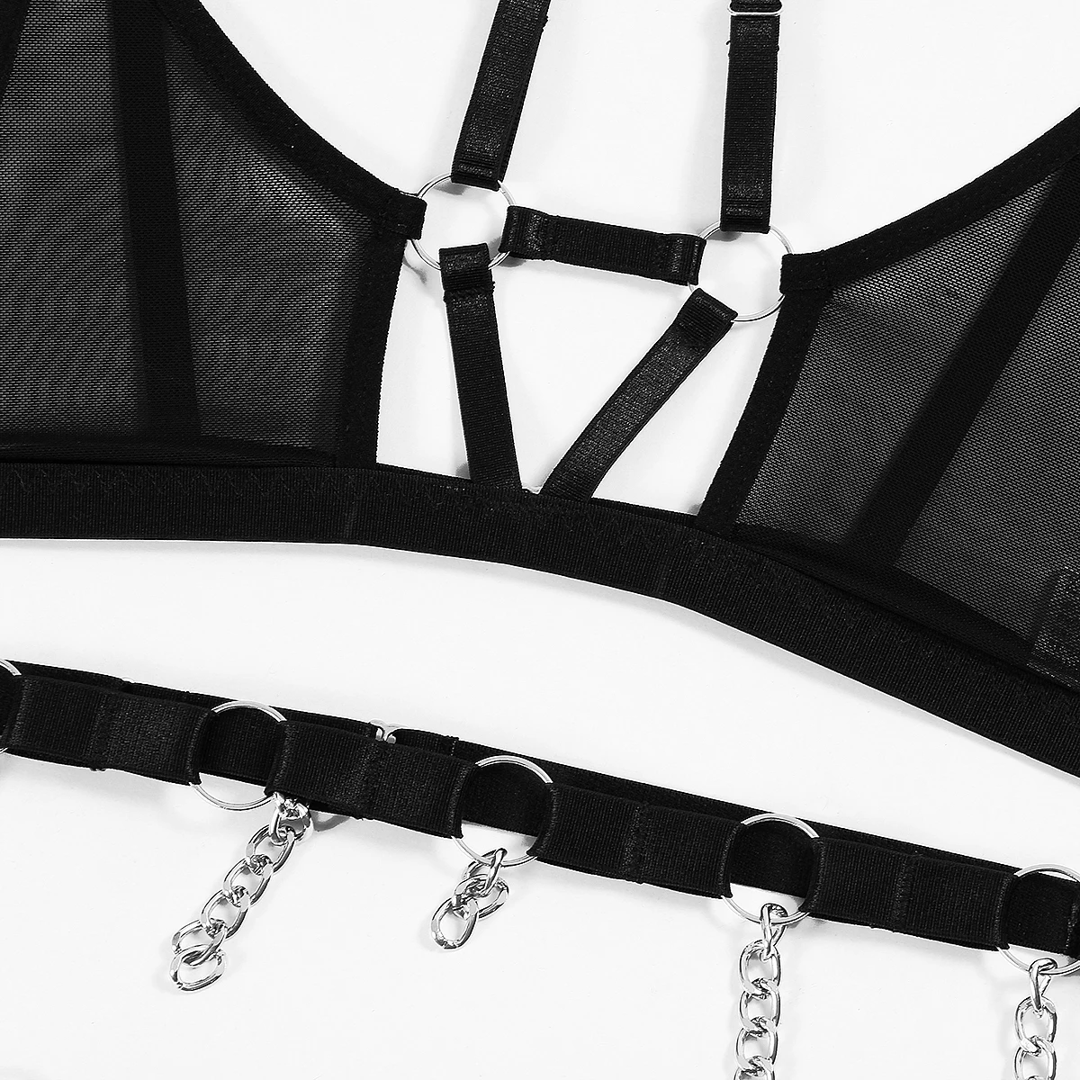 Soyez le premier à laisser votre avis sur “Lingerie sexy en maille transparente, bretelles en métal”