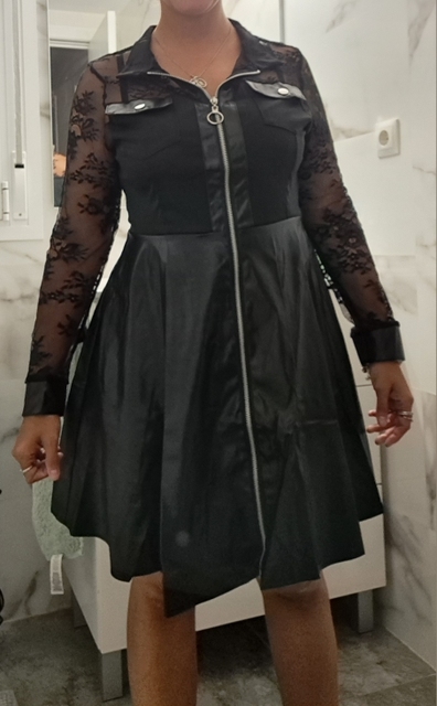Noir 1: robe de couleur unie, noir 2: robe à manches patchwork en dentelle