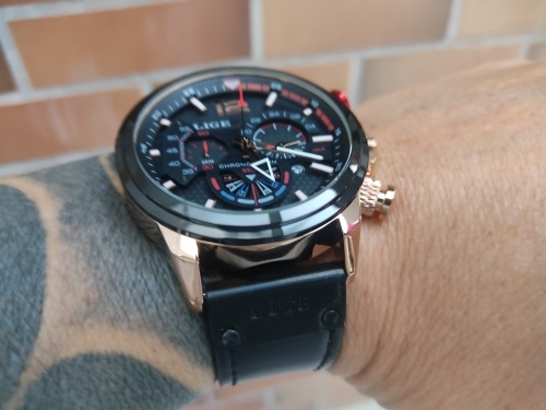 Cuir décontracté. Ceci est une horloge d’affaires et de loisirs élégante. Avec chronographe, calendrier automatique, étanche, antichoc, lumineuse et autres fonctions; convient à toutes les occasions.