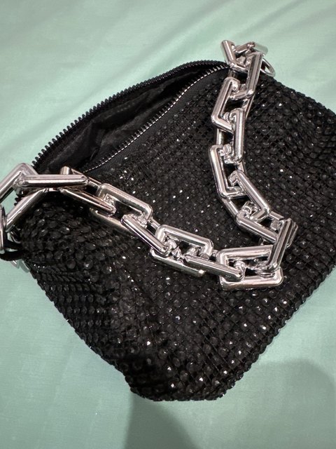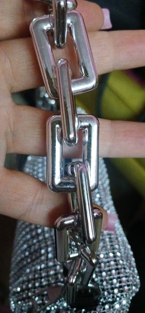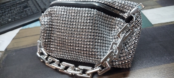 Le sac est merveilleux! Il est livré avec une sangle argentée plus grande pour s'adapter au sac. Elle brille beaucoup, super à porter la nuit