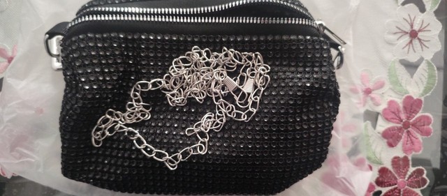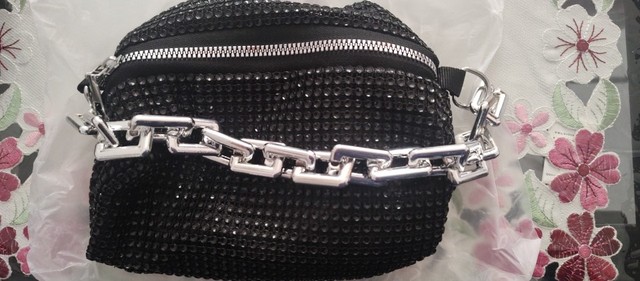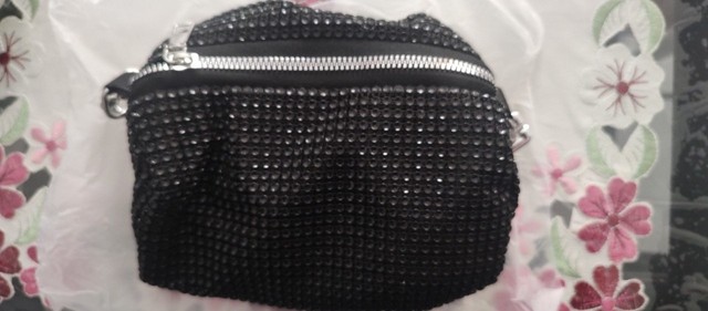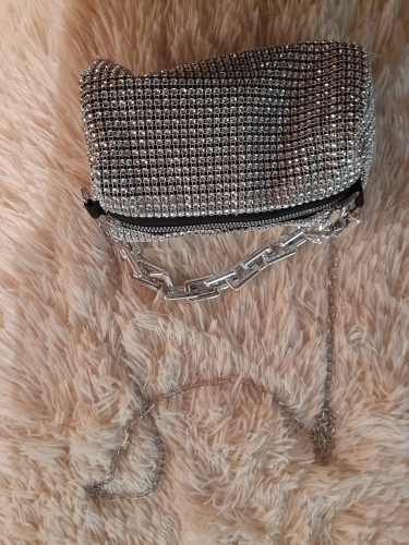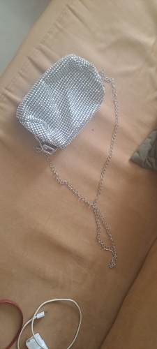 Je suis heureux et ravi de cette petite carte de pierres de strass. C'est beau, génial! Vaut la peine. Il s'adapte parfaitement au téléphone portable, à une poudre, à un rouge à lèvres, à un mouchoir et à la clé de la maison. Il a également une chaîne en argent à mettre sur l'épaule. Super! Merci à vous!