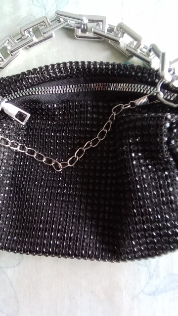 Le sac est très beau a très bon matériel, il est léger mais il est trop petit comprend la chaîne pour accrocher et la chaîne qui est épaisse est en plastique, seul le téléphone portable et un portefeuille peuvent s'adapter