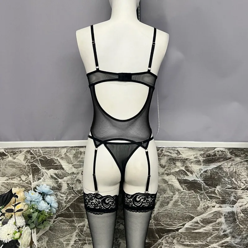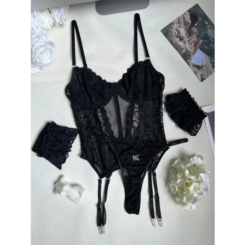 Sous le buste 76-100 cm, taille des jarretelles 70-86 cm, taille de la culotte 76-100 cm, longueur de la culotte 38 cm ;