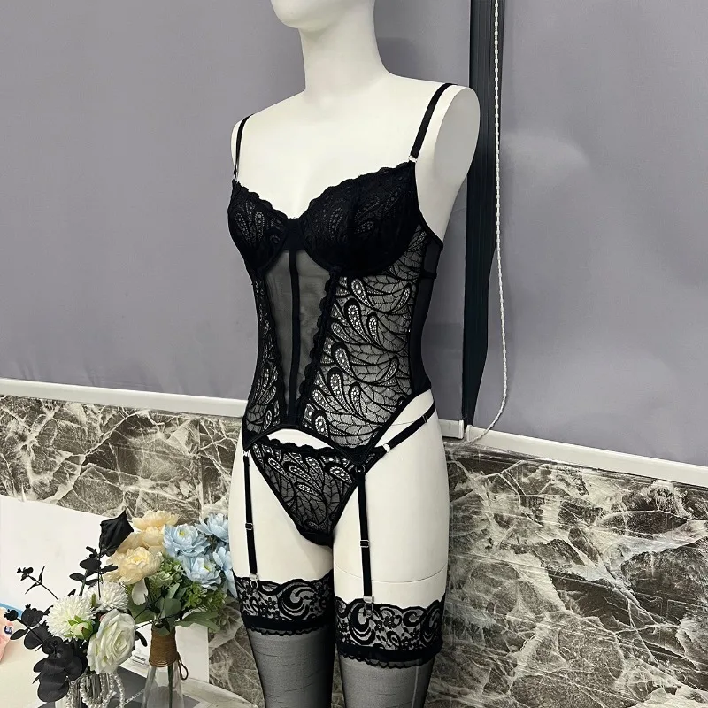 Soyez le premier à laisser votre avis sur “Sexy Lingerie Onesie femmes Sexy dentelle Patchwork maille transparent couleur unie jarretelles”