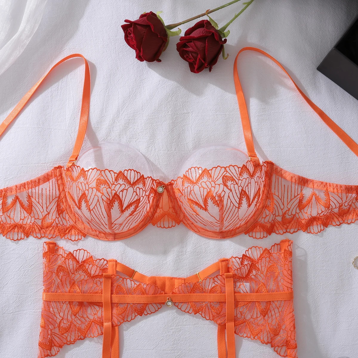 Soyez le premier à laisser votre avis sur “Spécial mode modèle brodé Transparent Sexy Ensemble 4 pièces”