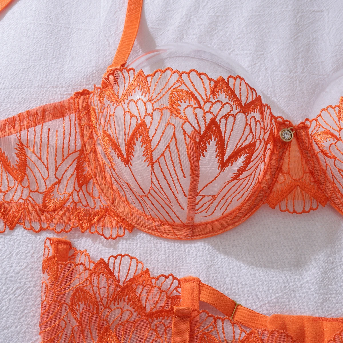 Spécial mode modèle brodé Transparent Sexy Ensemble 4 pièces