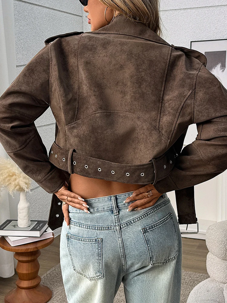 Veste d’extérieur femme – Faux cuir rétro ample, style biker streetwear tendance