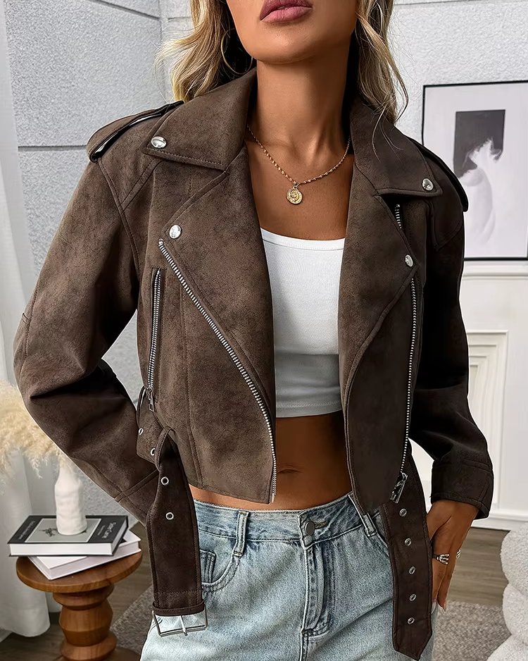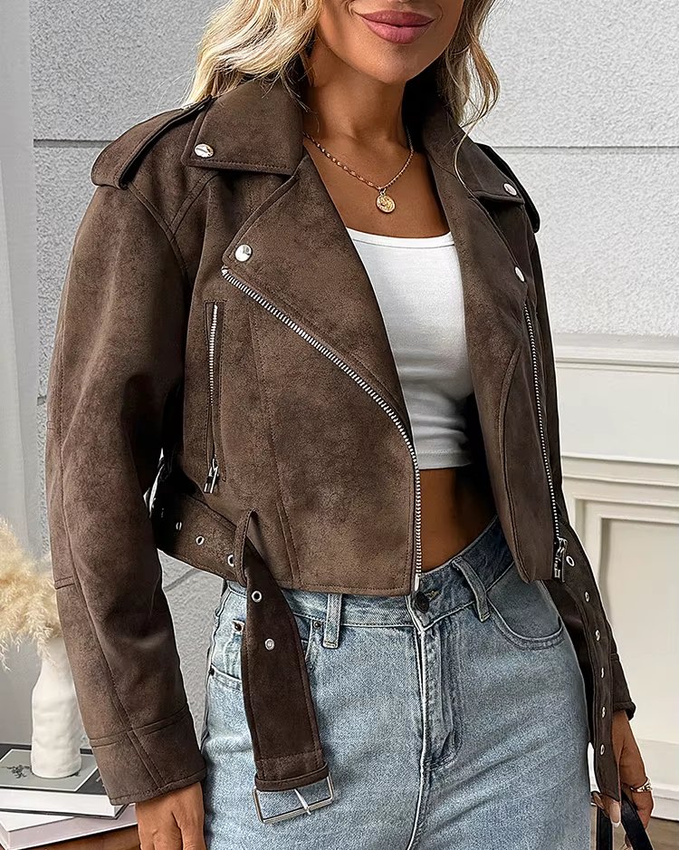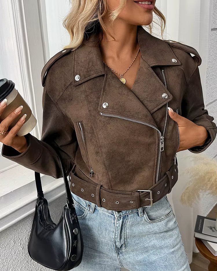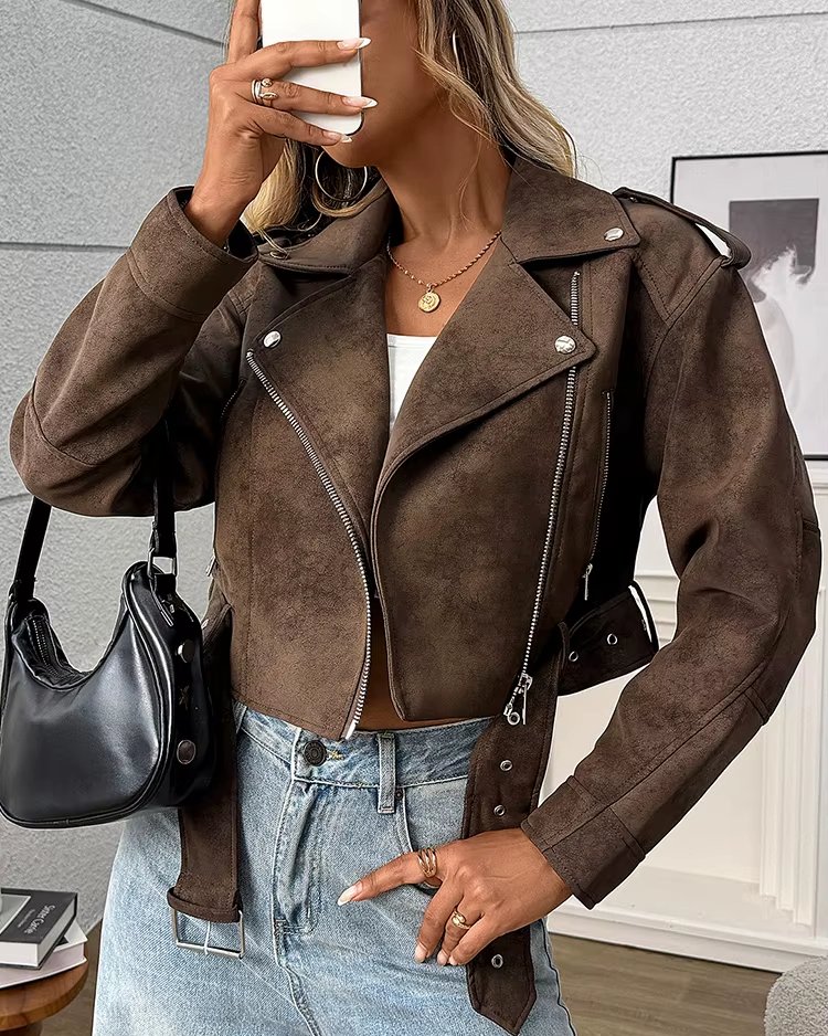 Veste d’extérieur femme – Faux cuir rétro ample, style biker streetwear tendance