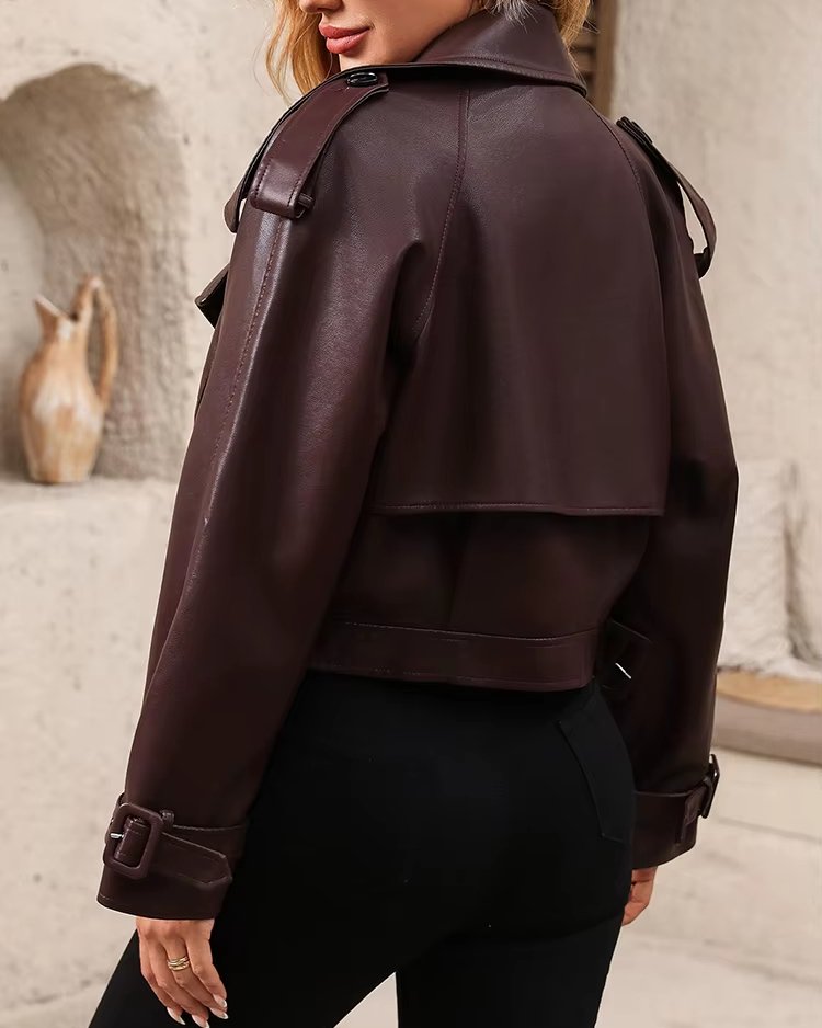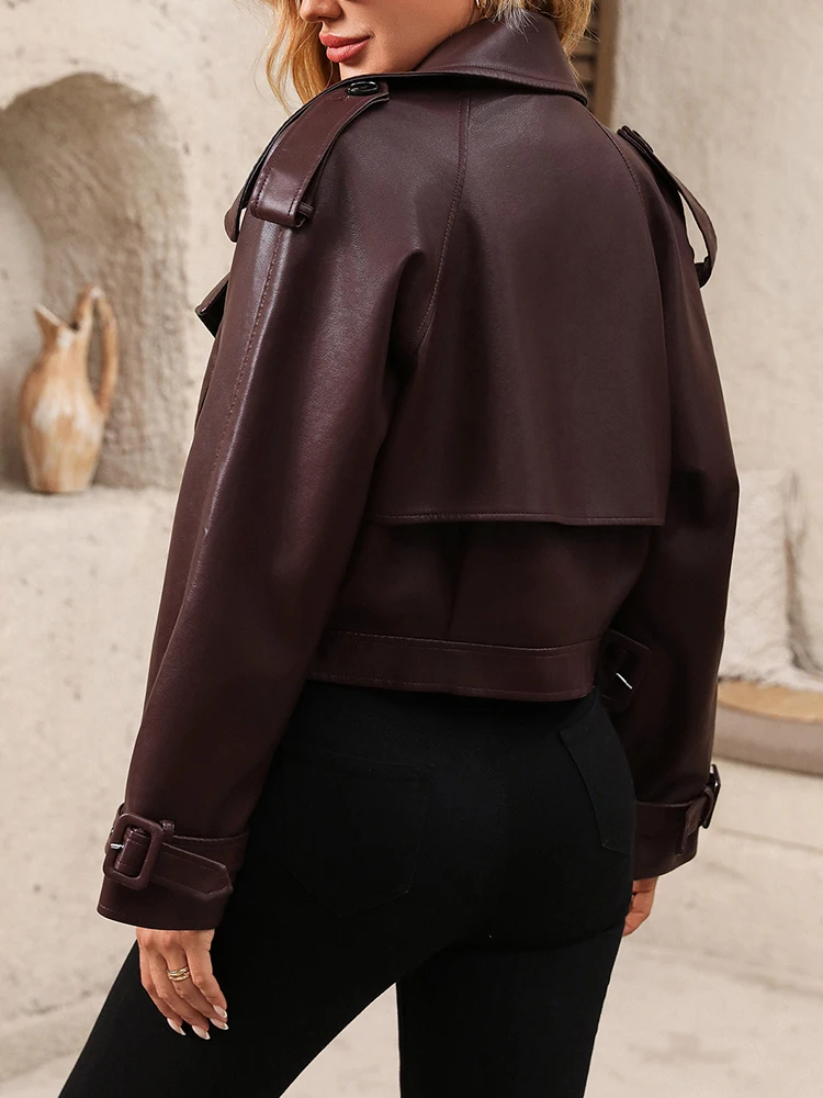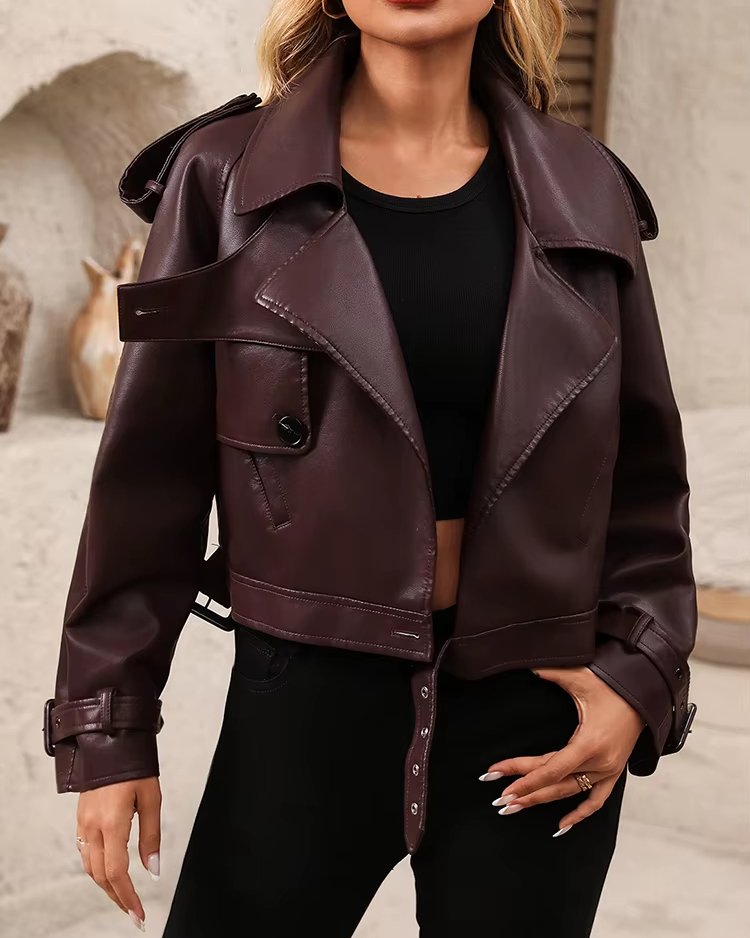 Veste femme rétro en faux cuir – Coupe ample et ceinturée, look streetwear chic