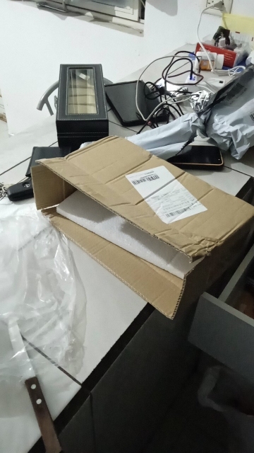 Arrivé, la boîte où elle est emballée n'est pas maltraitée mais quand elle est ouverte on peut voir la serrure de la boîte détachée, c'est dommage car le reste est dans le bon sens. Débuts et adieu.